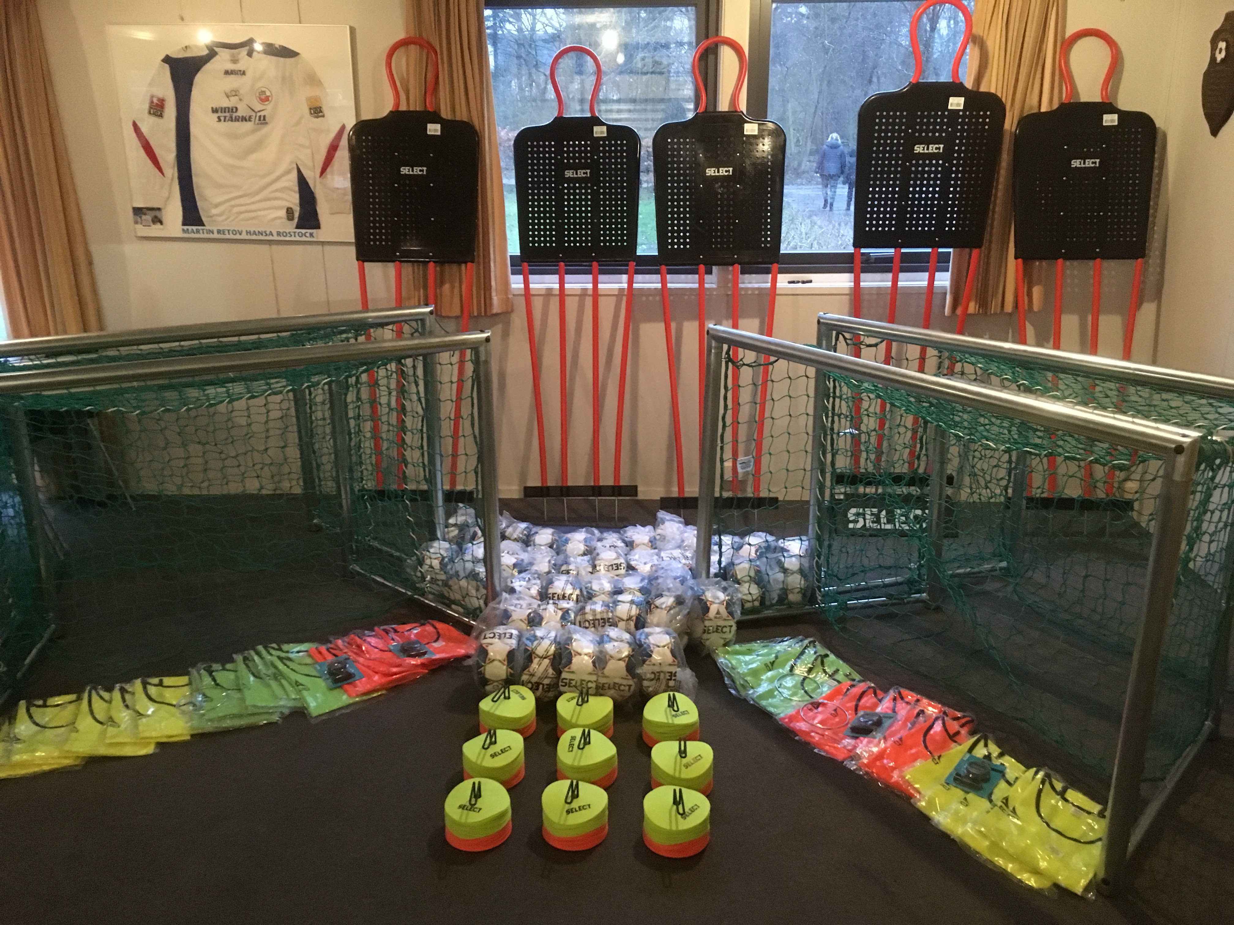 Derudover har vi fået overtrækstrøjer og flade kegler, så nu der ikke er nogen undskyldning for, at en af de 40 bolde vi også har modtaget, ikke lander lige i fødderne hos modtageren.